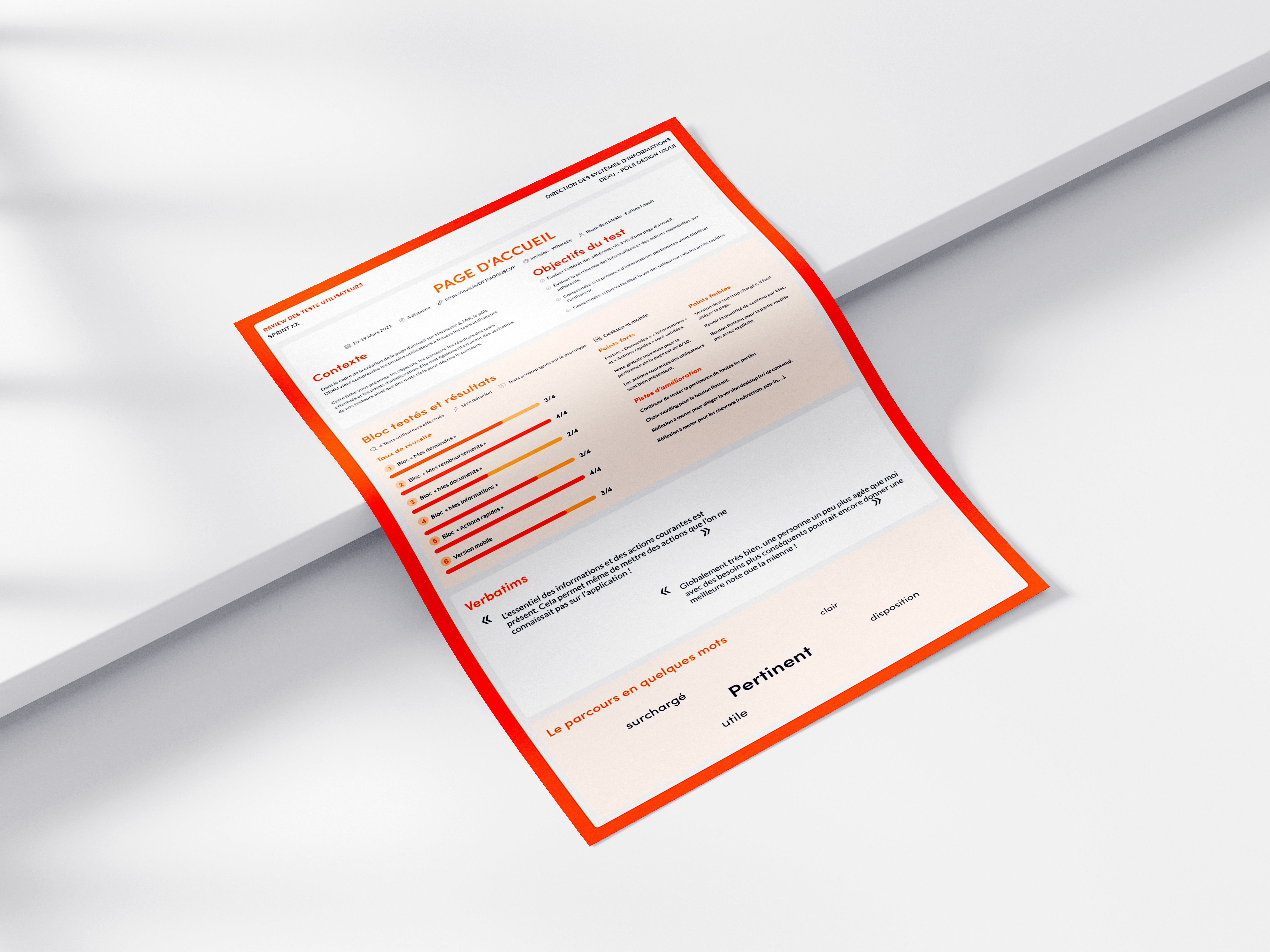 Pour procéder aux tests, nous avions une stratégie bien précise. Faire tester le prototype à des utilisateurs non adhérents à Harmonie Mutuelle. Nous ne voulions pas que l'utilisateur soit biaisé par ses connaissances déjà acquises au cours de l'utilisation de l'application. Nous avons donc communiquer sur Linkedin pour toucher un maximum de personnes. Une fois les personnes contactées, nous avons conduis les tests puis analysés les retours pour procéder à une nouvelle itération.
